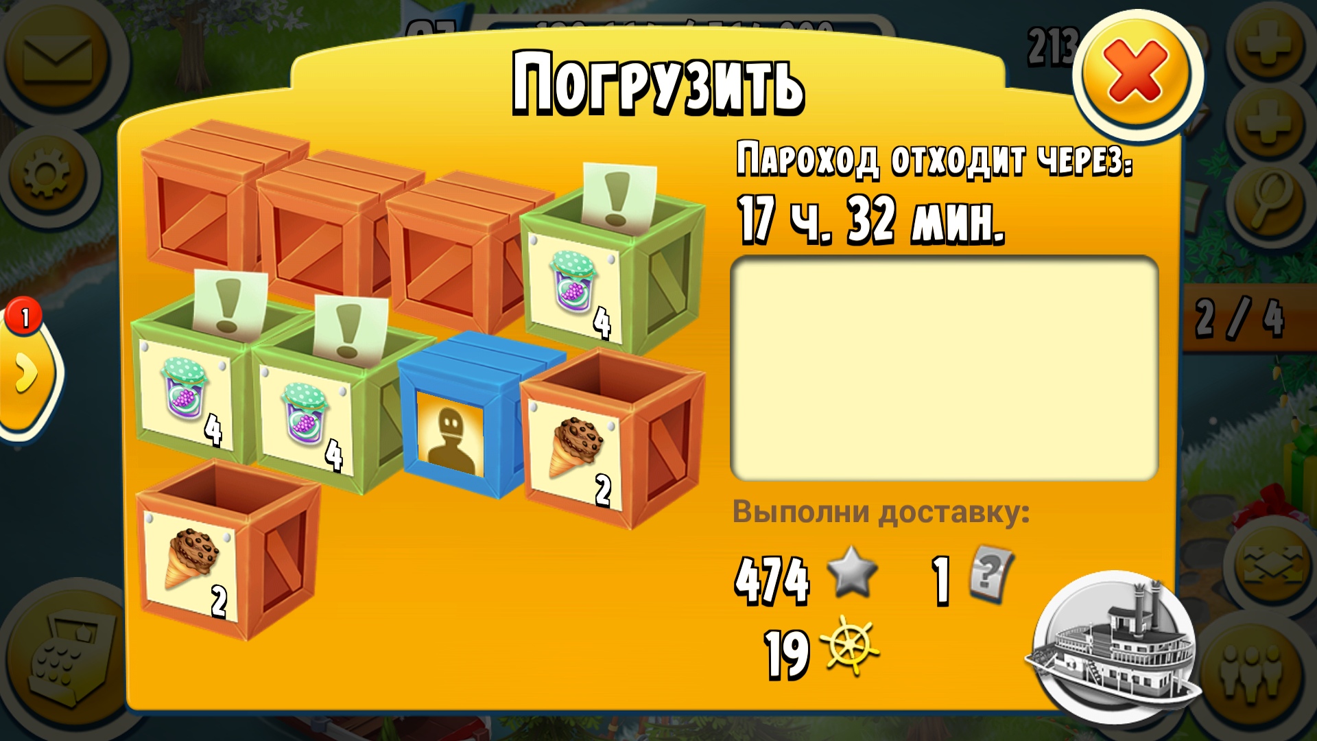 Корабли в этот раз приделали, никогда не брала их раньше, все алмазы угрохала что в сундуках нашла, терпения не хватает ждать их по 4 часа. Последний меня убил с виноградным вареньем 3 по 4. Варенье делается 5.5 часов, на 12 шт требуется 66 часов, почти трое суток. Это как? Благо народ грузит ВСЕ что не попросишь. Спасибо за помощь всем игрокам!))) Ну и ускоритель на 3 ящика на 24 часа помог конечно)))