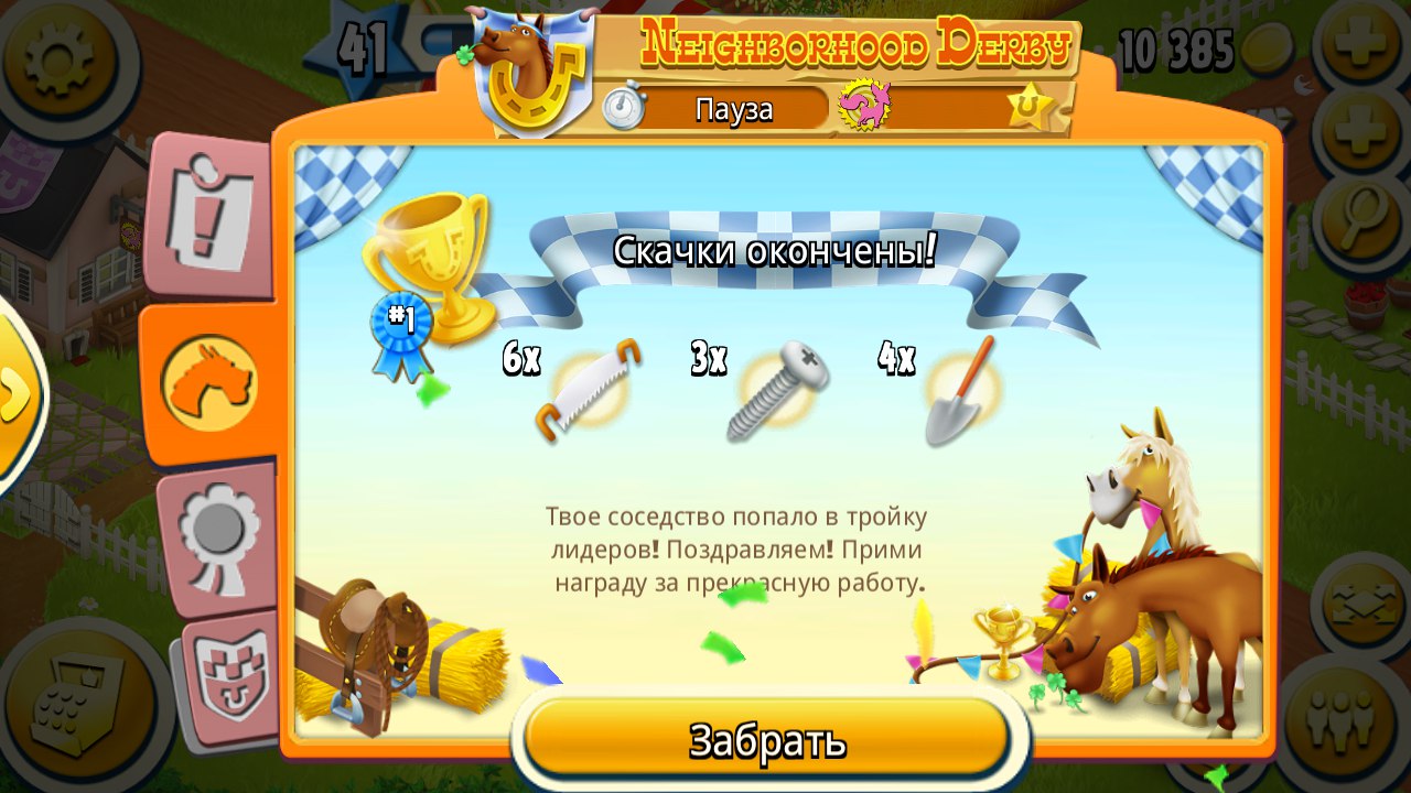В подковах седло(я не брала),два свитка,два пазла,бустеры .в общем,призы нормальные.декор мне не нужен,и так вся ферма завалена штучками всякими…