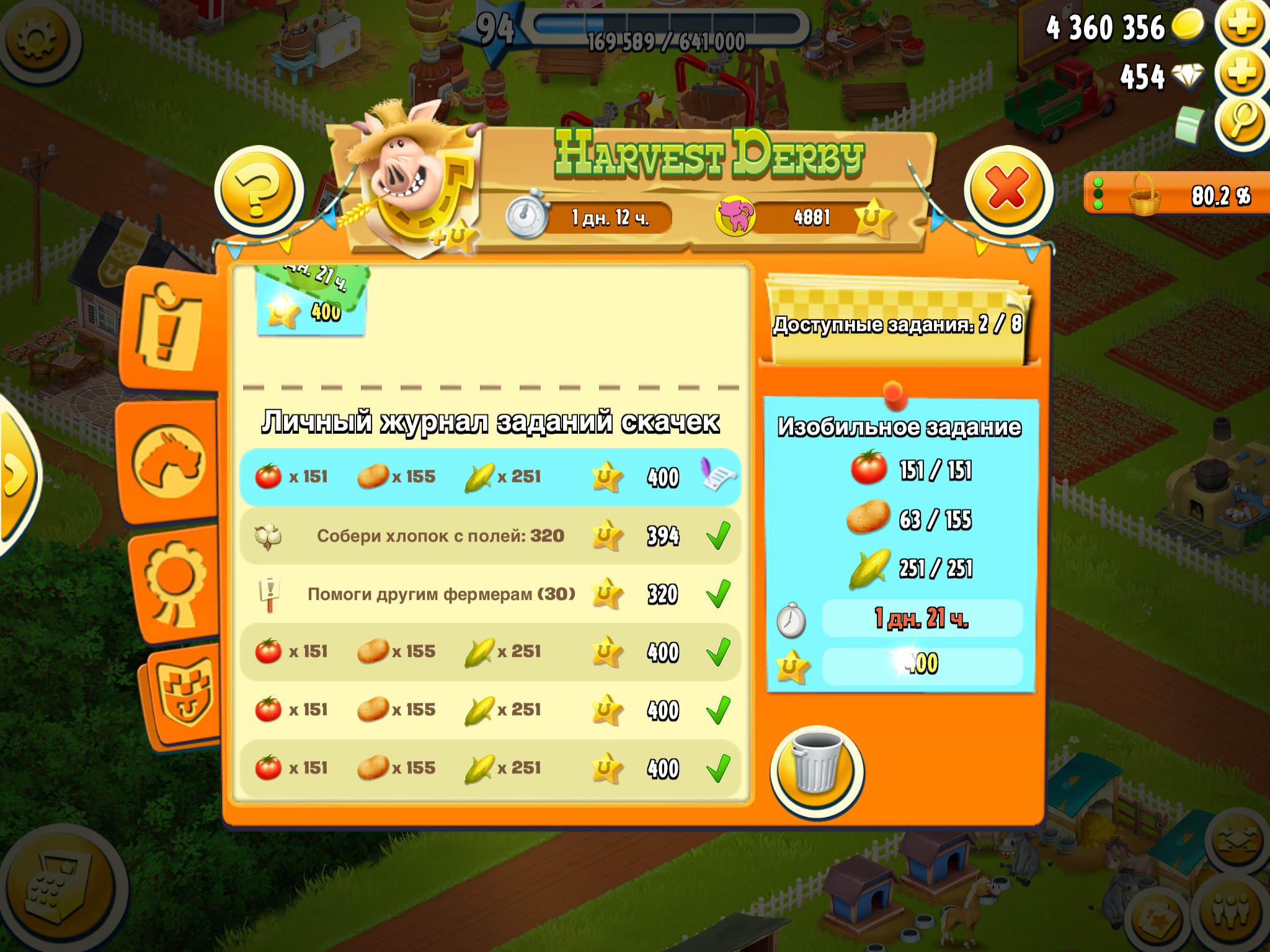 А в первый день повышенных заданий не было вообще, из за чего день был практически потерян. Латук, хлопок и тростник появились почему-то два дня назад. И то, в заданиях меньше 390, которые изначально по наивности брать мы не собирались.