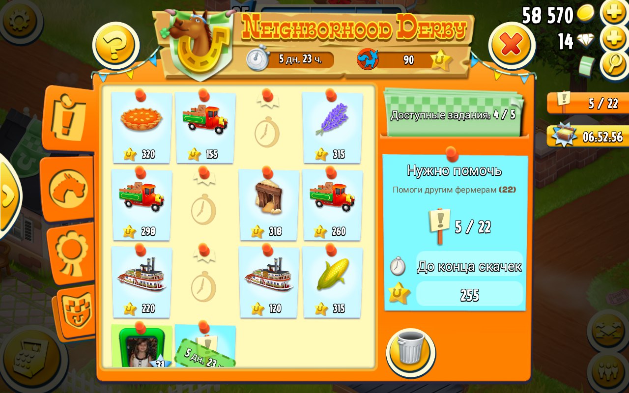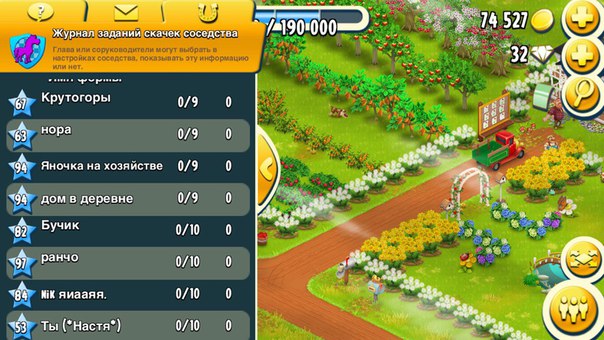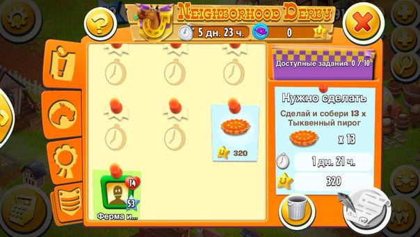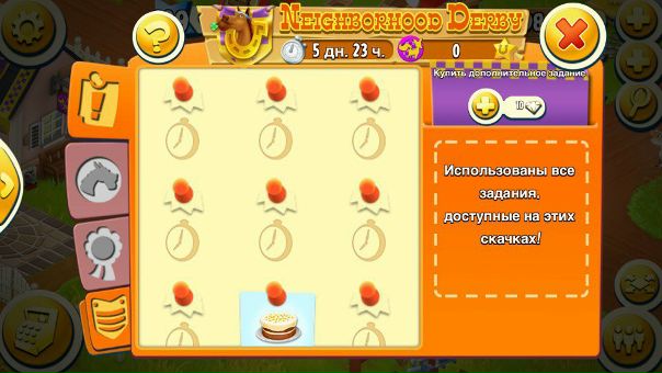 Игра показывает, что все участники соседства в скачках и что все сделали уже кто 9 кто 10 заданий. При этом очков ноль