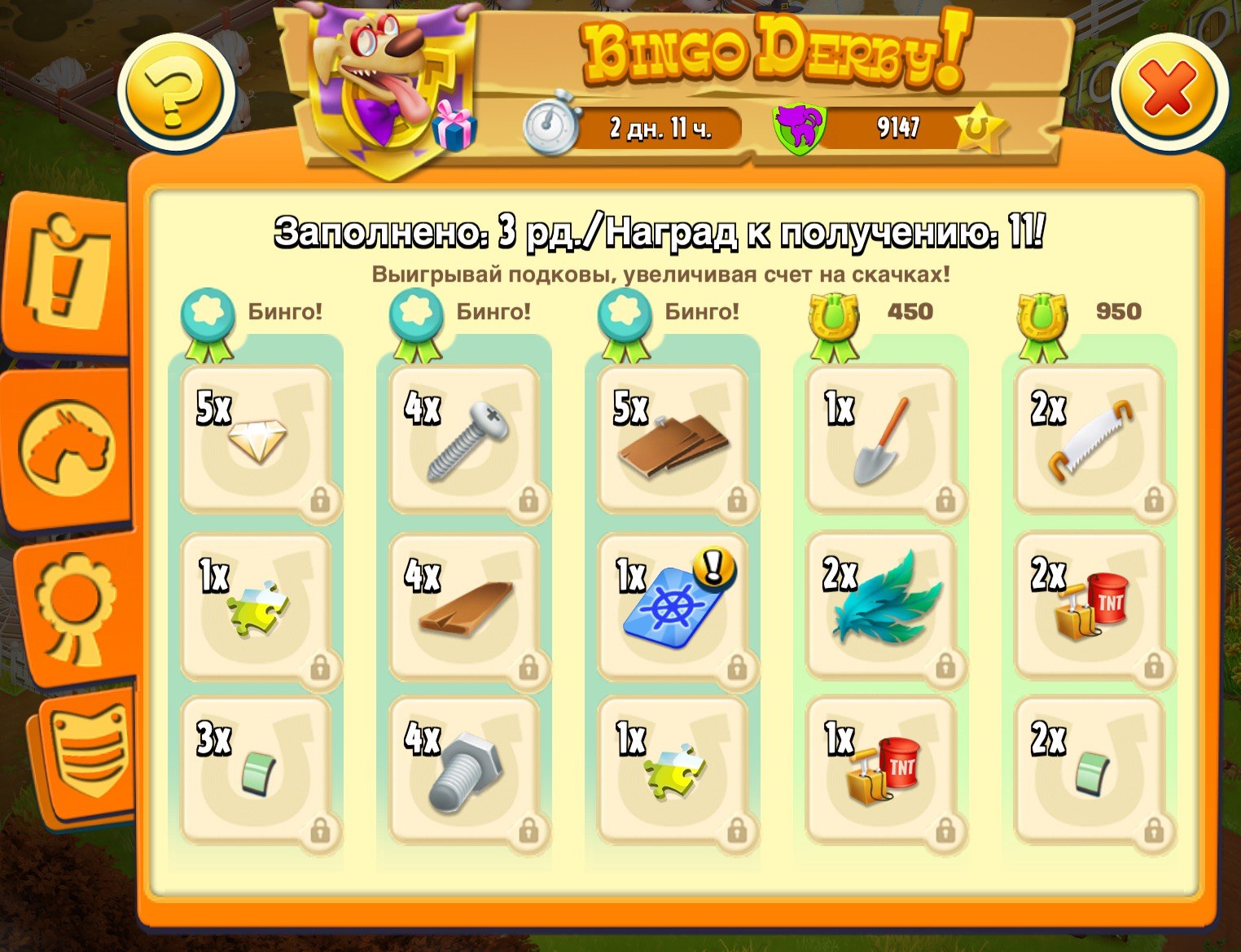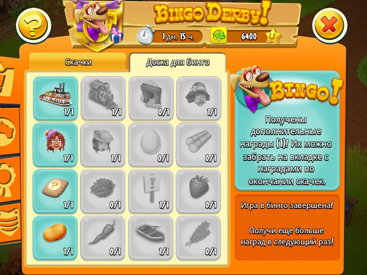 Интересно сколько вас участвует в скачках и сколько нужно сделать заданий для бинго.