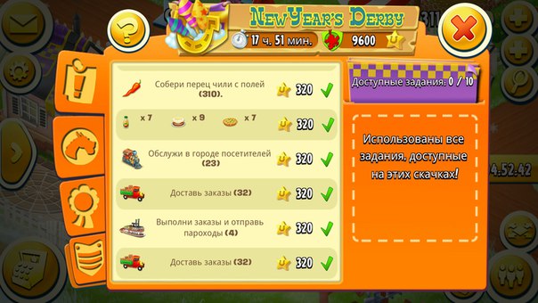 Привет всем, всех с Рождеством! У вас все хорошо с заданиями? У нас одни корзинки выпадают, времени совершенно не хватает, нормальные задания вообще не падают, просто ужас… Киньте скрины своих заданий, пожалуйста, я хочу посмотреть.