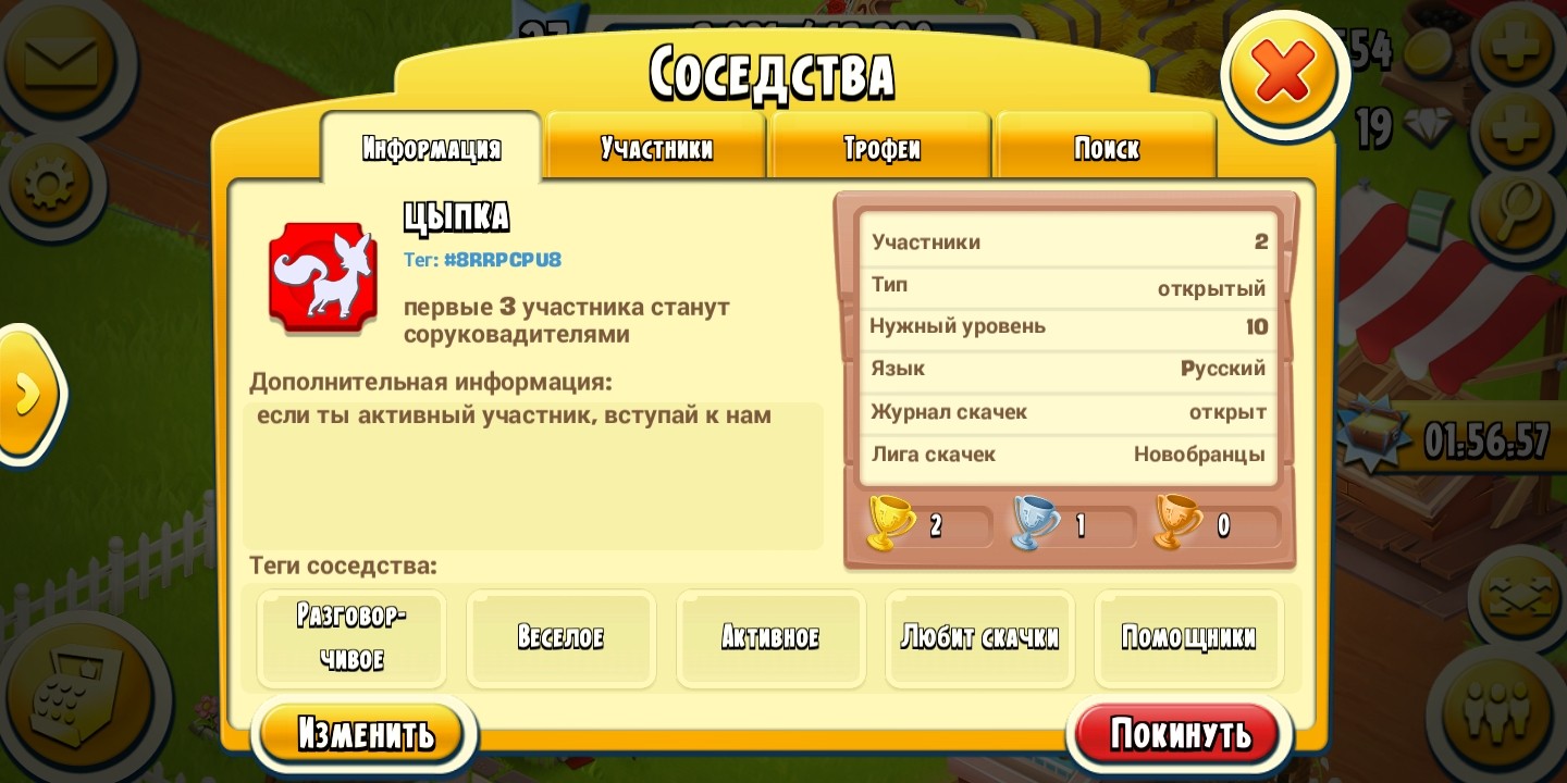 Активный? Подарки в виде монет и вещей. Но и есть штрафы , очень маленькие за провал , невыполнение заданий на скачках.(Разделяются между участниками кто участвовал в скачках).Для каждой лиги свои условия и штрафы. Подарки каждую неделю!! Прикольные события в соседстве , подарки от 1к до 10к монет. Заинтересовало?Вступай,не пожалеешь) Мы новички , но на следующей недели будем профессионалами)