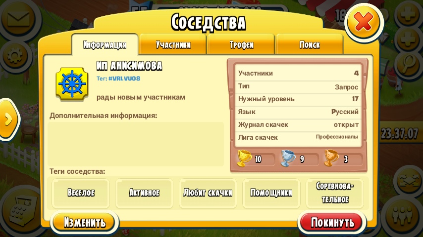 Фермермы! Представляю Вашему вниманию соседство, для тех кто любит скачки, идет набор людей на следующие скачки (уже 4 человека будут участвовать) в этих скачек мы возьмем завтра 1 место, также есть кубки с предыдущих скачках, участие в скачках является обязательным! Набор с 18 уровня, также будем помогать чем сможем. Вводите в поиске соседств наш хештег #2CY0U9GL (через ноль) ждем активных игроков!