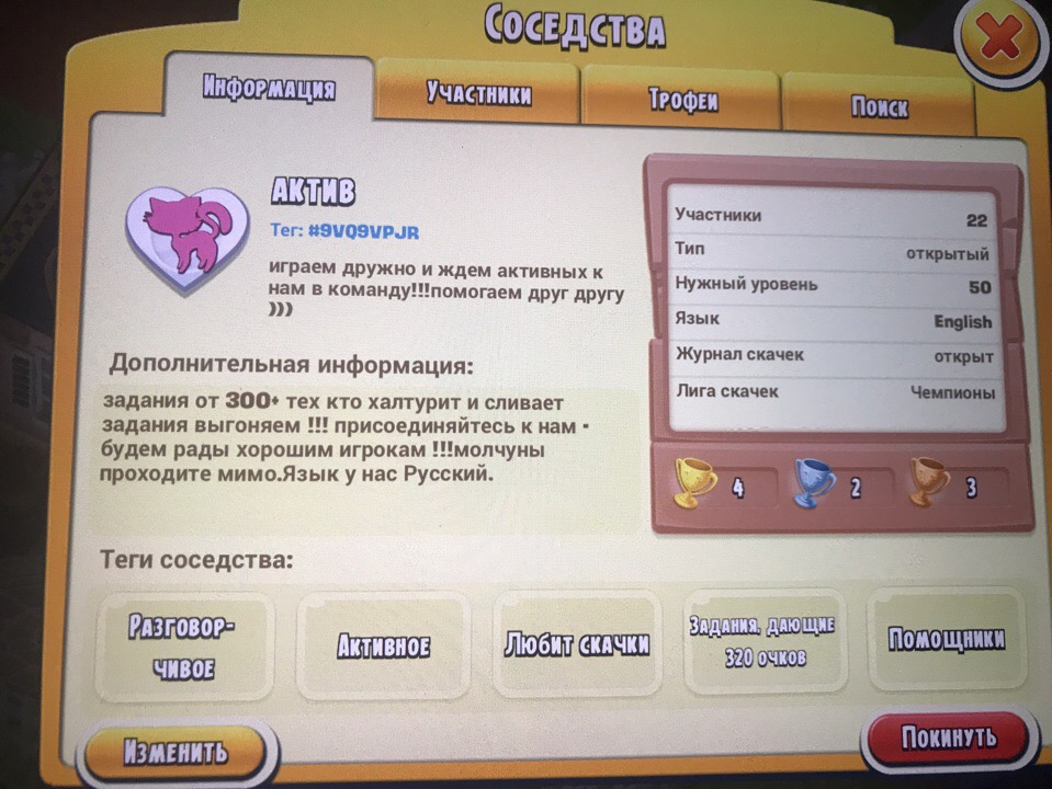 Приглашаем вас в наше соседство☸. Будем рады новым участникам? От вас-желание играть и участвовать в скачках ? От нас помощь и поддержка???Уровень 1⃣5⃣➕