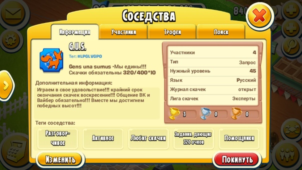 Хей хей хей всем хай дэй, добавляйся к нам в соседство если ищешь дружный коллектив , активно участвуем в скачках, 24/7 помогаем друг другу)