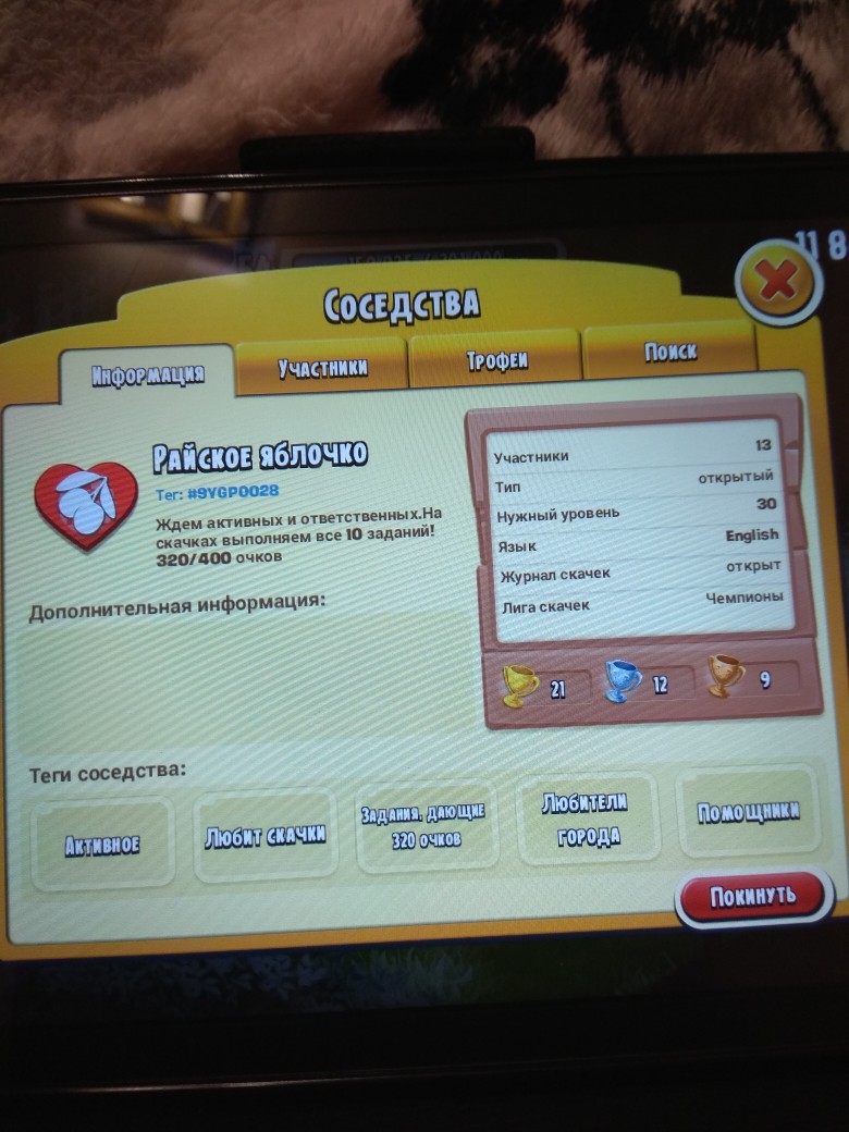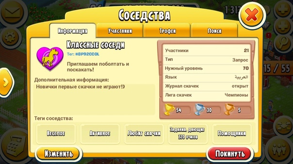 Если вы хотите наслаждаться процессом игры, а не гнаться за кубками, то вам к нам! ✅В скачках участвуем по желанию! Добро пожаловать! ?Давайте вместе прокачаем наше соседство! ⬆️