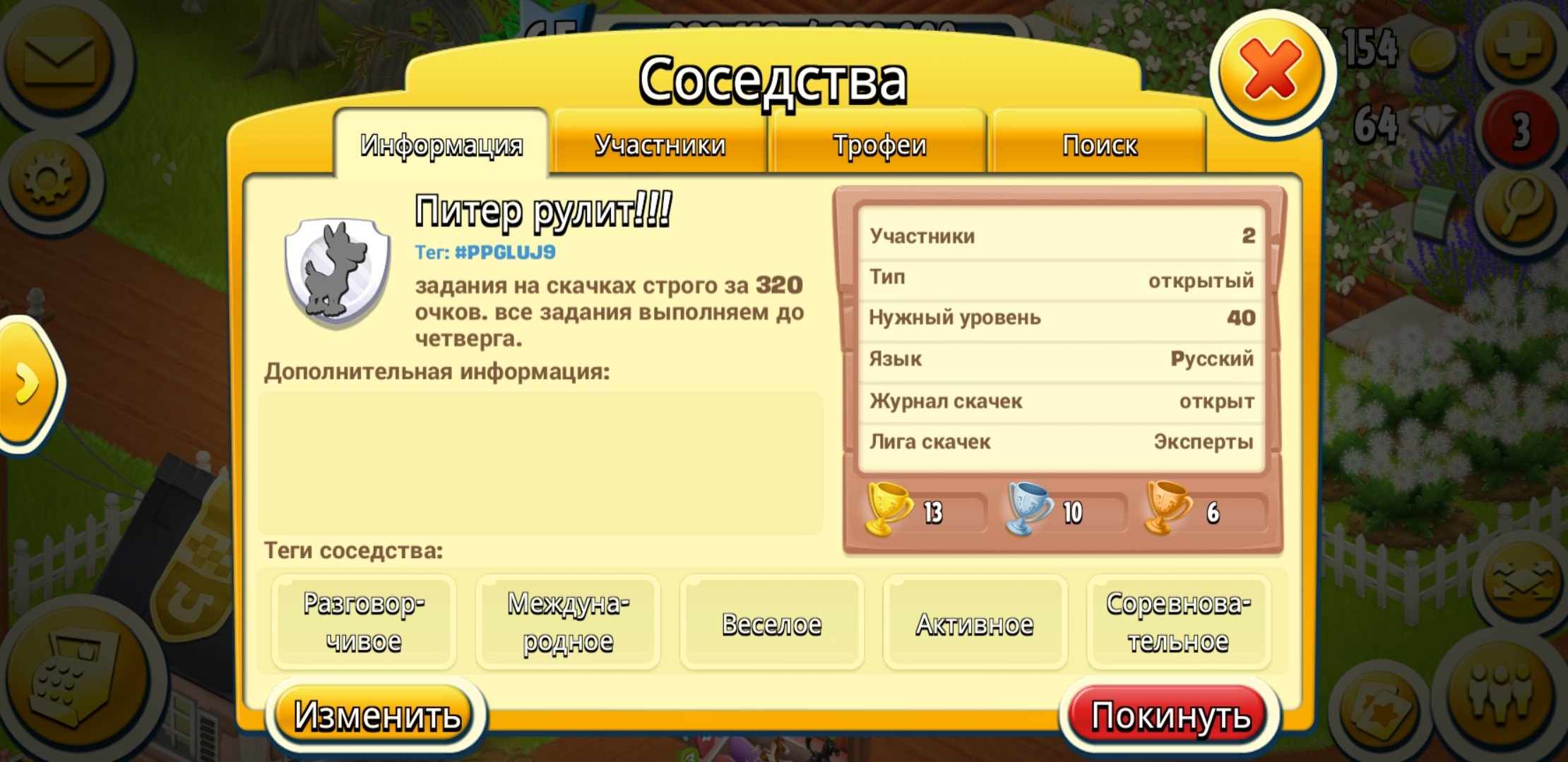 Создала своё соседство и собираю активных игроков)