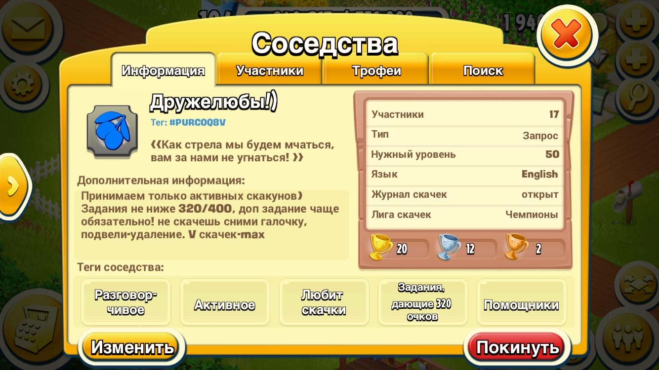 Приглашаю активных и общительных участников в наше дружное соседство!Всегда поможем всяческими вкусняхами для твоей фермы!!Приходи к нам ,мой дорогой друг,и ты не пожалеешь,что выбрал именно нас???
