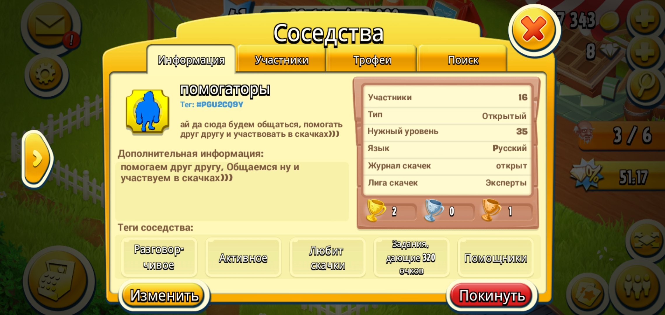 Скачки – высшая лига, нужна помощь (советом или предметами) – не вопрос*, общение тоже завезли. Весь состав соседства – взрослые и адекватные люди. Потому, если тебе нужна спокойная и приятная игра, интересное общение и ты устал от глупых школьников в чате – нам по пути.