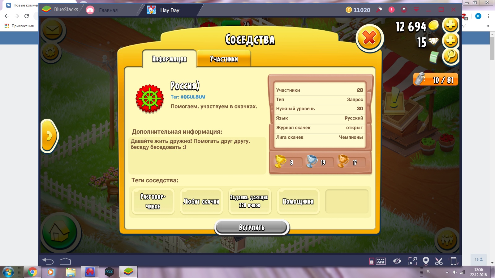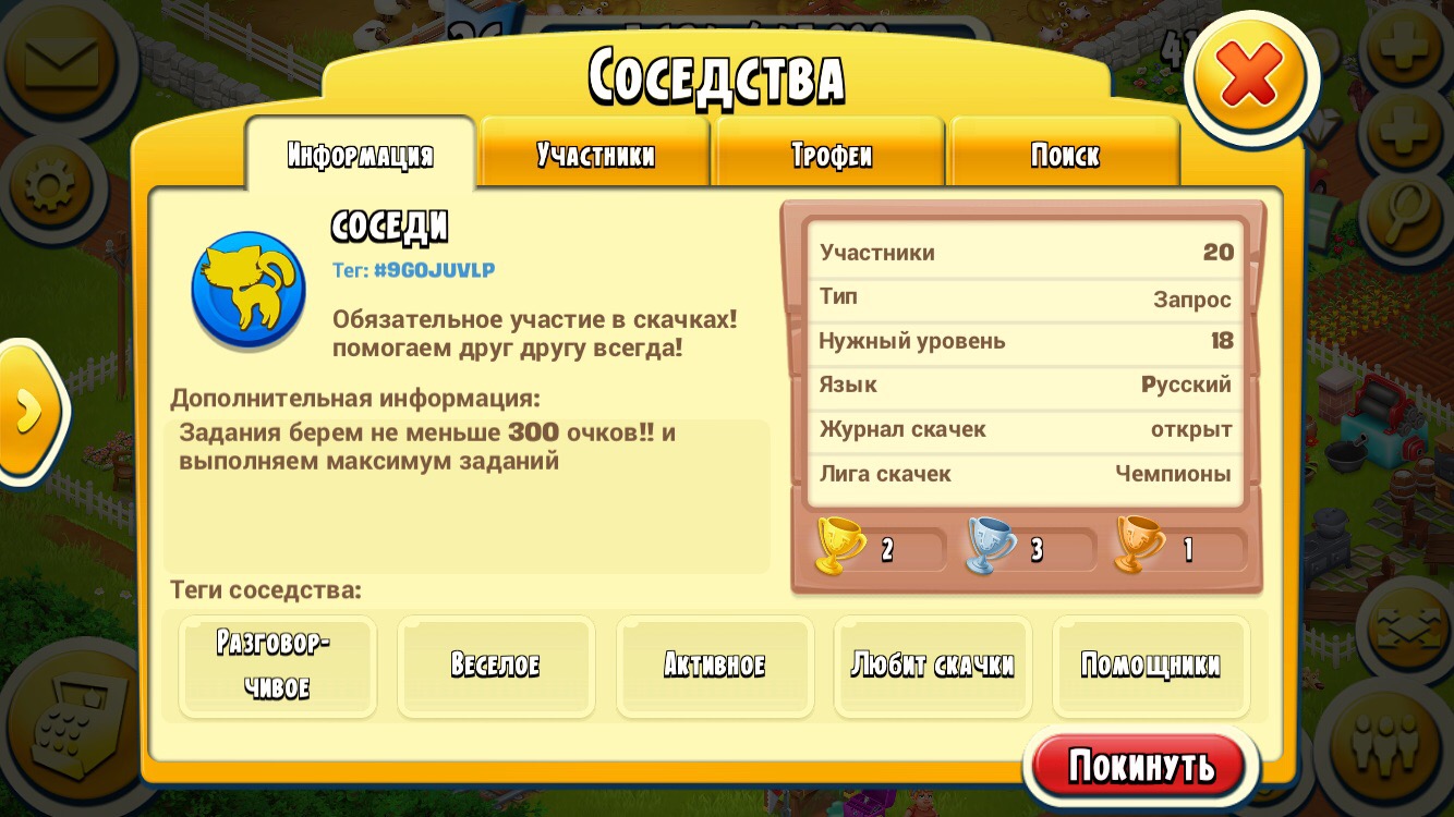 Приглашаем в наше соседство “соседи “18 + или 30 +, обязательное участие в скачках, задания 300+ желательно, соседство дружное и общительное, помогаем по возможности, взаимопомощь приветствуется ?Вступай к нам))