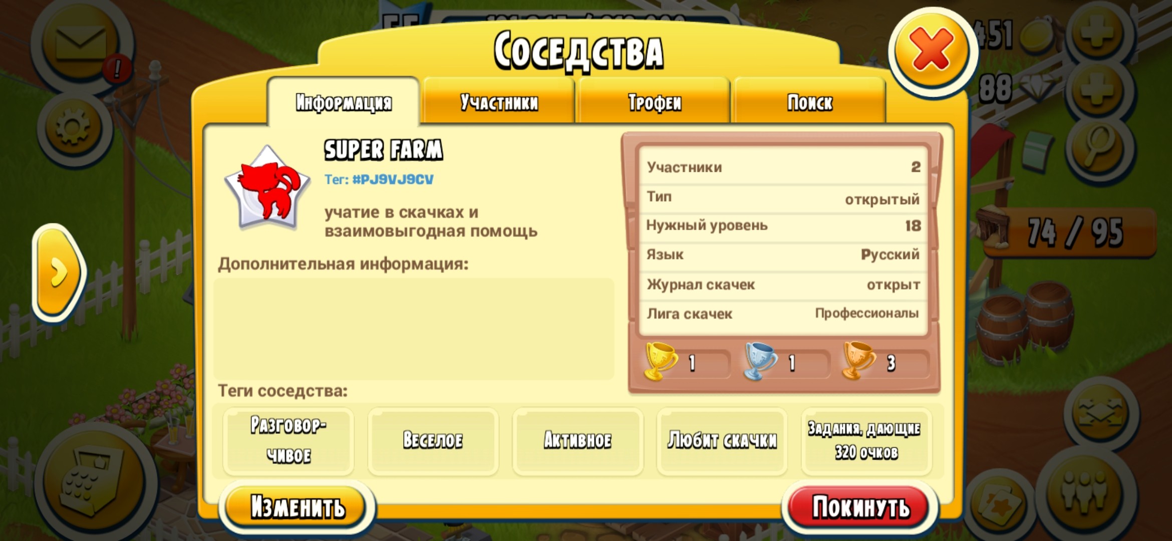 Ждём активных скакунов. Возраст не важен. Важно скакать НЕ за кубки,а за подковы. Не только постоянно просить у соседей,но и отдавать! Выполнения всех заданий( за рубины не заставляем.) и конечно же- задания от 300+! Так же у нас есть активная ватсап-беседа,где вы в любой момент можете попросить помощь и мы тут же среагируем( на сколько это возможно,ведь все мы люди). И самое важное- мы лояльны. Если вы не можете полноценно скакать- вы спокойно относимся к пропуску скачек,главное быть ответственным и предупреждать ДО начала скачек. Лентяев мы не любим. Но всегда идём на встречу) ведь мы,прежде всего,люди,а не роботы,зависающие 24/7 в игре!! Если интересно – гоу к нам в соседство. По вопросам- в лс ( я,собственно говоря,и есть руководитель).