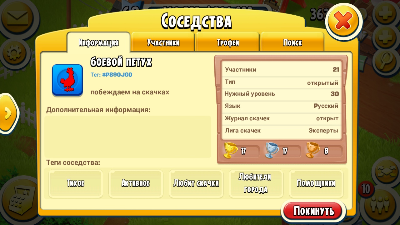 Ищу соседство которое играет за подковы до 7 человек . 49 уровень. Учавствую в скачках, выполняю задания по максимуму.