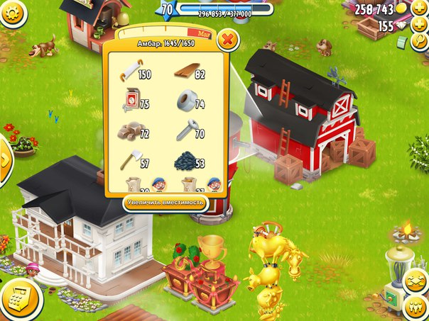 А когда дают золотое дерево? Играю полгода, 79 уровень, 2000 амбар, 1500 башня. 30 штук варенья для меня неосуществимо, как и 30 штук брынзы в наличии. Но я гоняю машинки – поднимаю уровень.