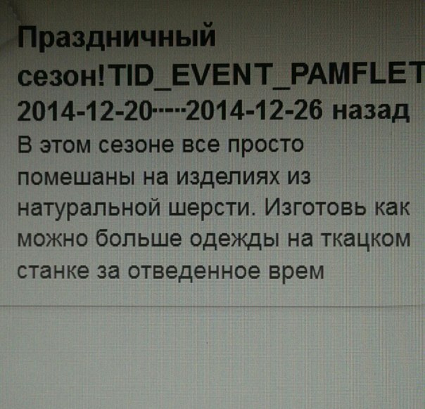 Скорей бы новое событие((( а ведь уже пятница ! Автор: Вова · 19.12.2014 Скорей бы новое событие((( а ведь уже пятница ! Похожие обсуждения:Новое обновлениеВ #HayDay наступило лето, а вместе с ним и новый календарь.С новым обновлением #HayDay изменился и календарь…С новым обновлением #HayDay изменился и календарь…