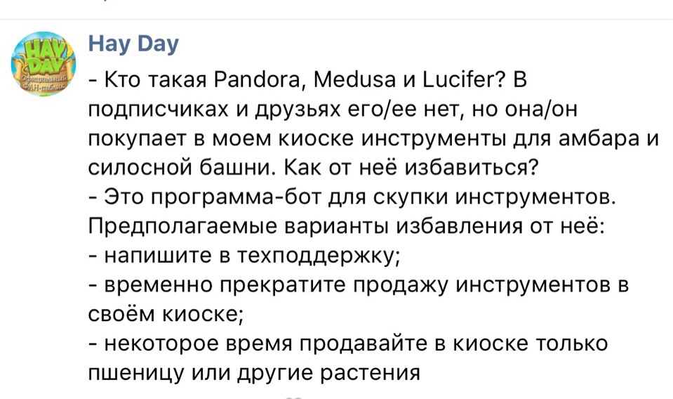Уважаемые фермеры! Наш традиционный пост вновь предоставляет Вам возможность быстро получить ответ на интересующий вопрос по игре от наших подписчиков – опытных фемеров ??????