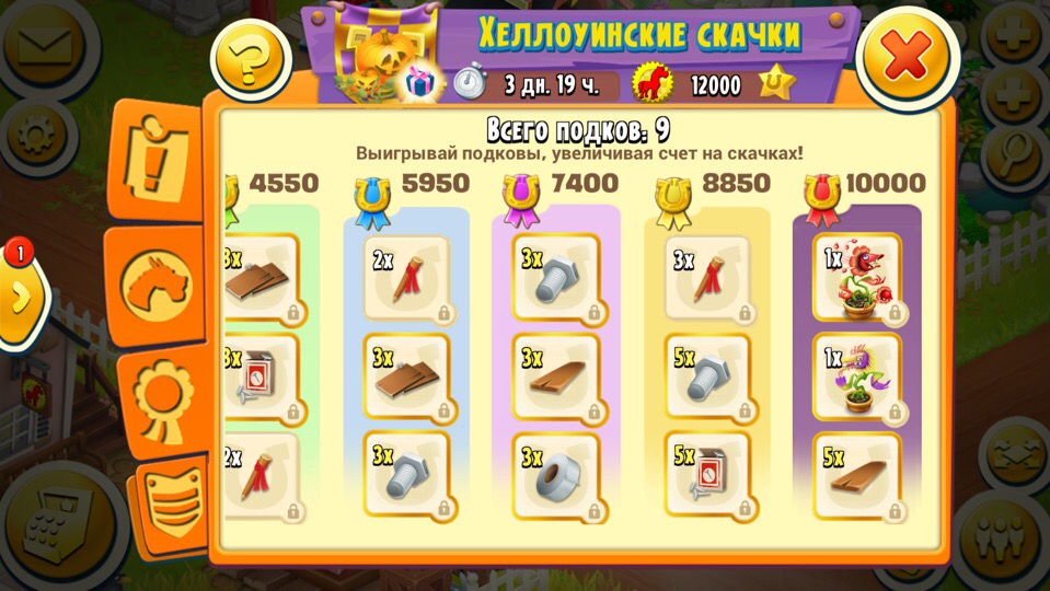 Юлечка, в прошлых скачках особый декор был не просто в последней (9й) подкове, а в последней подкове для любой лиги и любого количества скакунов! Т.ч. скорее всего и в этих даже один скакну получит заветную подкову ??