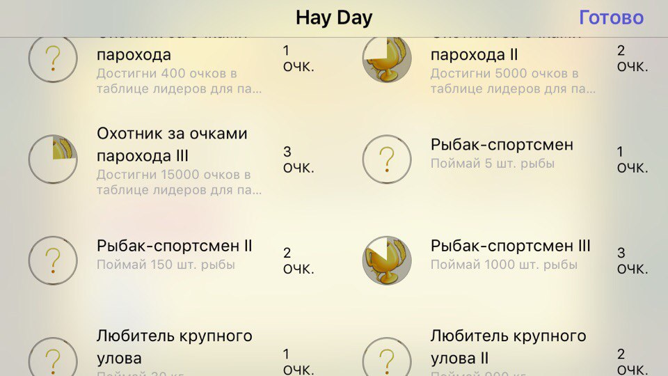 Анна, сбор яиц самое первое достижение – проверьте его. И на вашем скрине вообще много странного. Получается, что вы ещё даже не начинали выполнять достижение ловец очков парохода 1, но уже частично выполнили 2 и 3. И такая же ситуация с достижением рыбак. Надеюсь, техподдержка разберётся