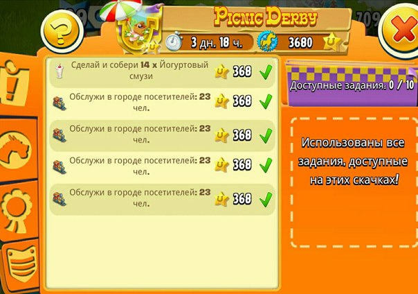 А мы вдвоем скачем. Только по 368. 13 заданий, из них 1 хот дог, 1 смузи и остальное город.