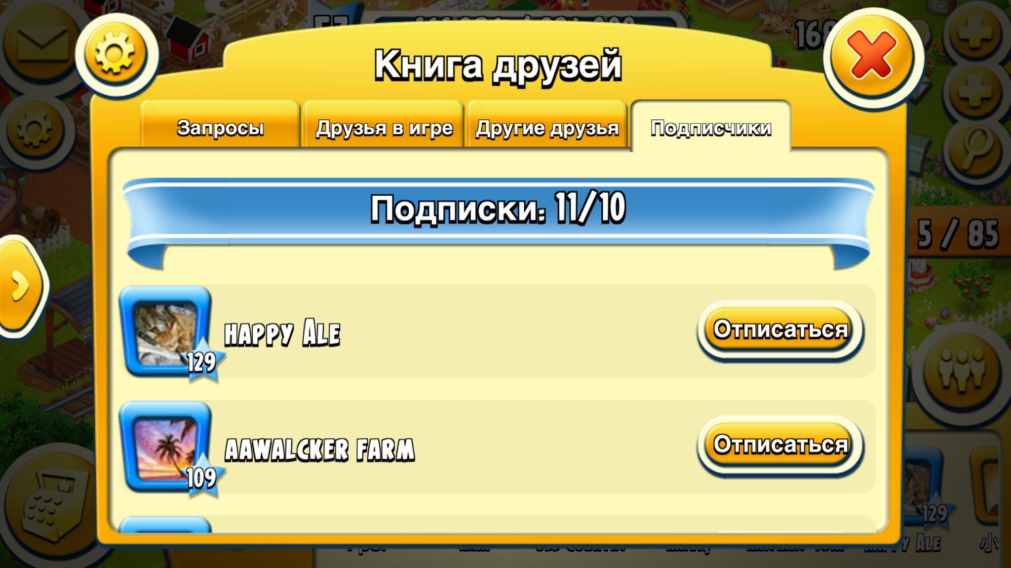Подписки – это когда Вы на чью-то ферму подписались, а подписчики – когда кто-то на вашу.