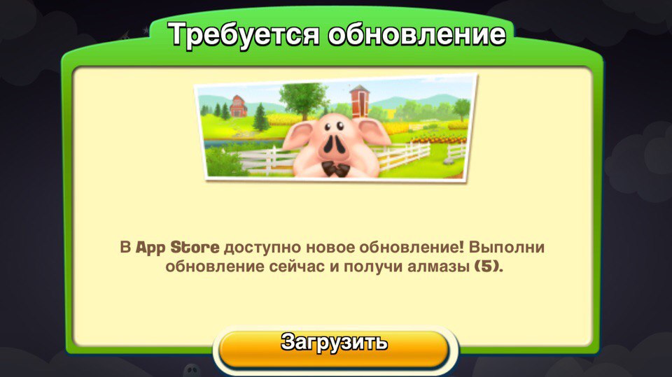 Мм,у меня яблоко, захожу в игру,пишет обновите и получите 5 алмазов,захожу в магазин,и пишет только открить игру,а обновить где???